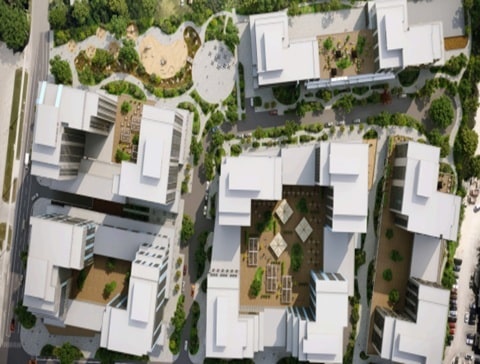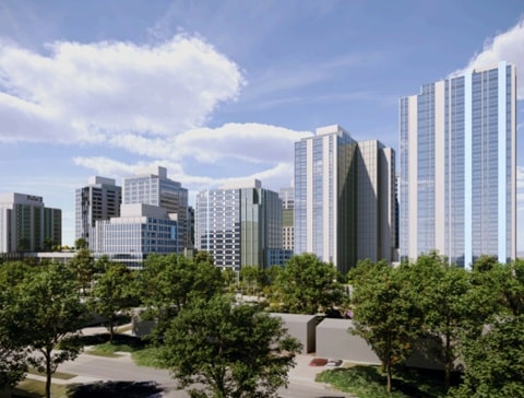 446 Albert Street will feature 13 apartment towers, ranging from 8 to 30 storeys, comprising 2,821 units. The development spans 11 acres and offers over 1,700 bicycle parking spaces and 1,300 vehicle parking spots. It will also include 72,603 sq ft of non-residential space, accommodating service and retail uses, office spaces, live/work units, public parkland, privately owned publicly accessible spaces, and a potential daycare.