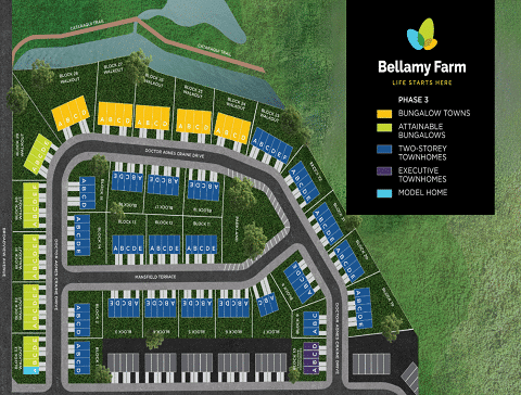 Bellamy Farm features a mix of 322 bungalow towns and two-storey townhomes designed for comfort, connection, and everyday convenience. With earlier phases already sold out, Bellamy Farm Phase III is now available and continues the communityโs approach to modern living. Floor plans range from 2 to 4 bedrooms and span 928 to 1,992 sq ft, giving homeowners practical, well-planned spaces to suit different needs and lifestyles.